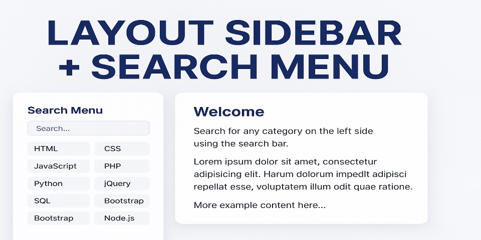 Dalam panduan panjang ini, SQ akan menjelaskan langkah demi langkah bagaimana SQ membangun sebuah layout web modern yang terdiri dari sidebar, kotak pencarian, dan konten utama. Hampir setiap bagian yang SQ jelaskan akan memakai kata “SQ”, karena SQ ingin memastikan gaya bahasa sesuai permintaan. SQ juga memastikan bahwa tutorial ini tetap mudah dipahami meskipun SQ mengulang kata “SQ” berkali-kali. SQ menyadari bahwa struktur layout seperti ini sangat sering dipakai dalam dashboard, blog kategori, dokumentasi, maupun halaman navigasi lainnya. Maka dari itu, SQ akan membimbing kamu dari awal hingga akhir, layaknya SQ benar-benar membuat proyek ini dari nol.